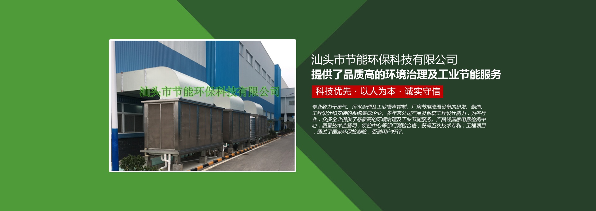 汕頭市節(jié)能環(huán)保科技有限公司創(chuàng)建于1998年,是一家專業(yè)致力于廢氣、污水、粉塵、噪聲治理,廠房節(jié)能降溫設(shè)備的研發(fā)、制造、工程設(shè)計(jì)和安裝的系統(tǒng)集成企業(yè)。多年來公司產(chǎn)品及系統(tǒng)工程設(shè)計(jì)能力,為各行業(yè),眾多企業(yè)提供了品質(zhì)高的環(huán)境治理及工業(yè)節(jié)能服務(wù)。產(chǎn)品經(jīng)國家電器檢測中心,質(zhì)量技術(shù)監(jiān)督局,疾控中心等部門測驗(yàn)合格,獲得五次技術(shù)專利;工程項(xiàng)目通過了國家環(huán)保檢驗(yàn)檢測,受到用戶好評。
